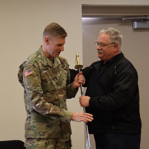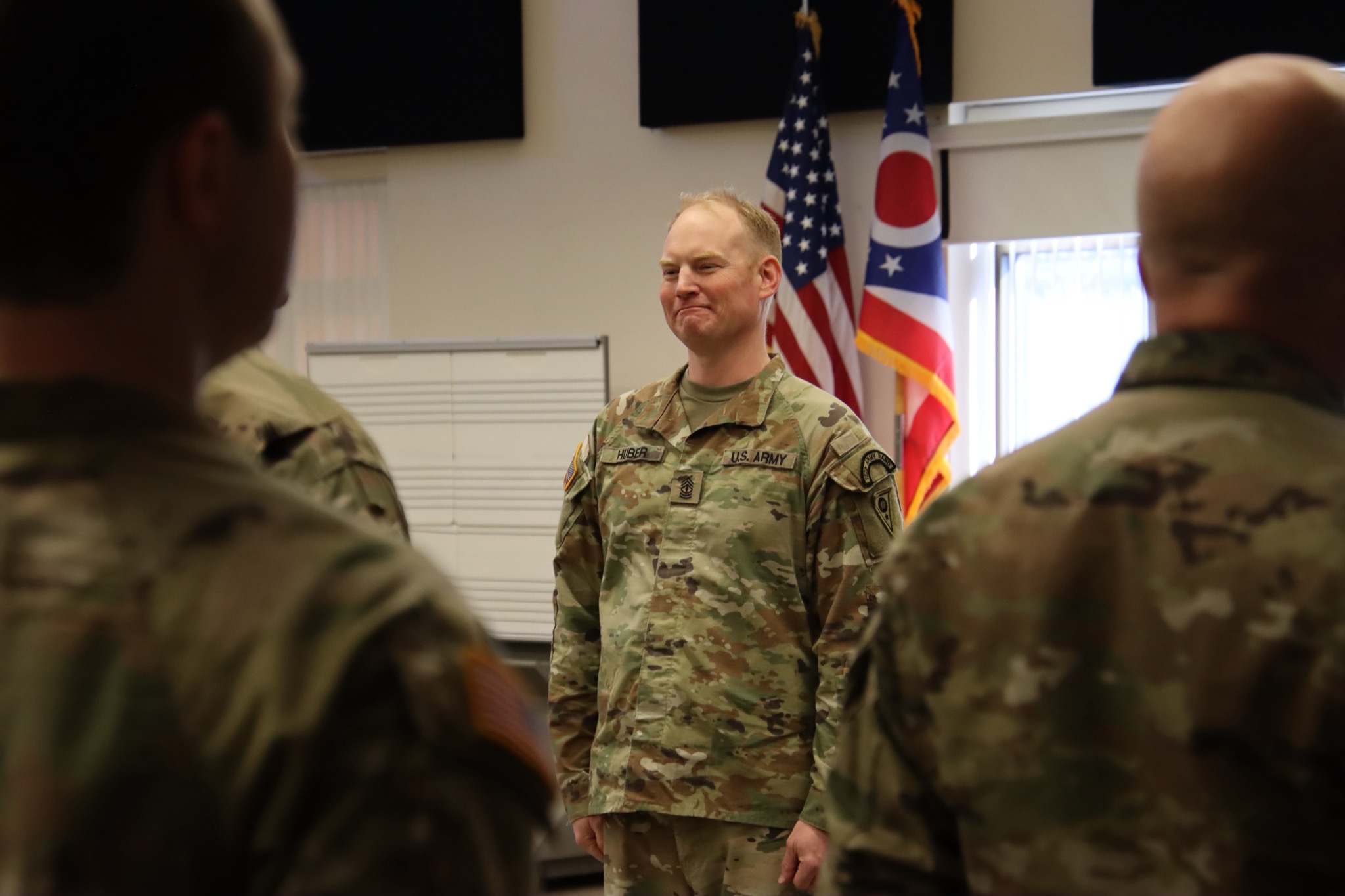Not only did this event mark the transition in leadership, but it also saw Marc Huber's well-deserved promotion to First Sergeant; we're excited to see him take on this new role. 1SG Huber first joined the Ohio Army National Guard at the age of 17 as an enlisted member of Delta Company, 148th Infantry Regiment. In 1999 he joined the 122nd Army Band as a saxophonist and has been a performer and leader within the group ever since.