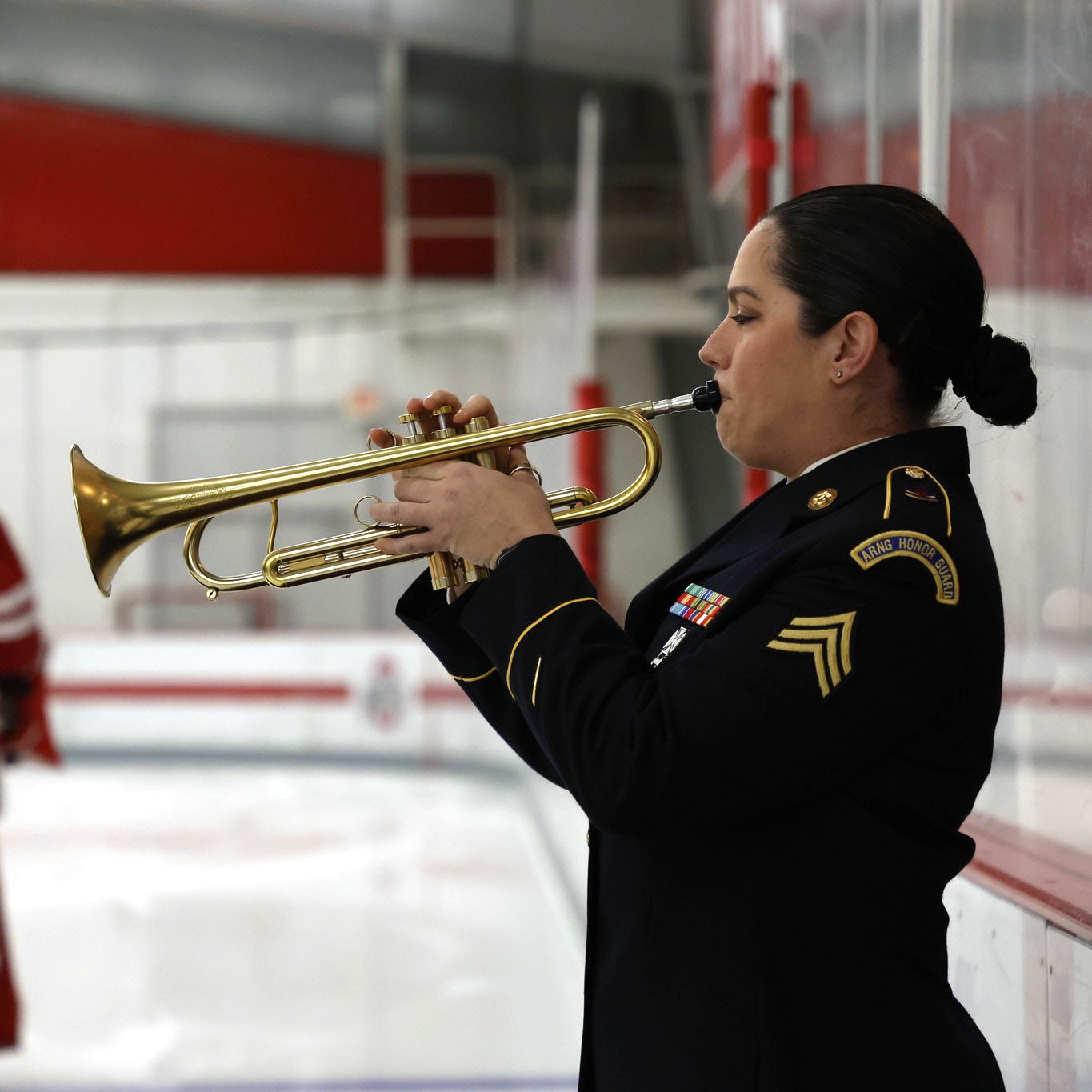 One aspect that made the experience particularly memorable for SGT Grimmer was the unique setting of the performance in the middle of a hockey rink. Despite the chilly temperatures and challenging acoustics, performing at her alma mater held special significance for her, who fondly recalled her days of ice skating at the university. Meeting Gene Smith, the athletic director for OSU, who praised her performance, further added to the meaningfulness of the experience.