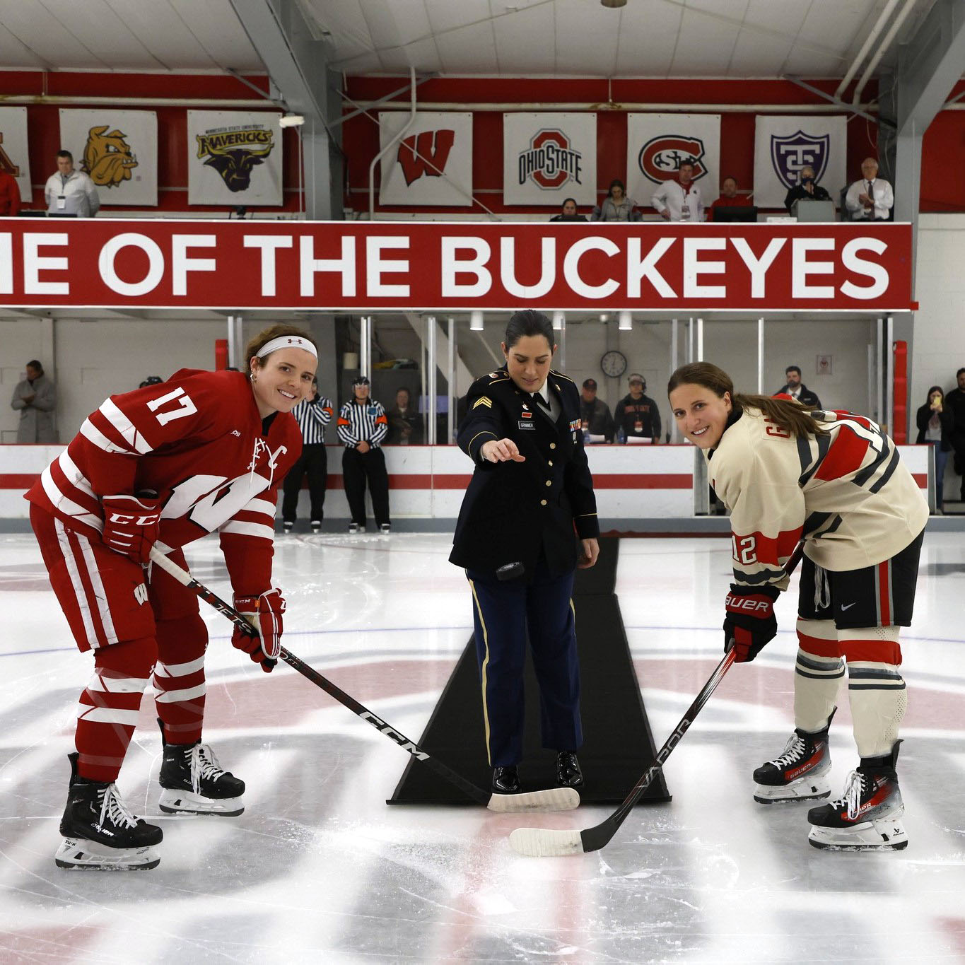 The invitation to the event came as a surprise to SGT Grimmer, who was nominated by an anonymous individual. A representative from the OSU athletic department reached out to her, offering her the opportunity to be recognized for her military service and to perform the National Anthem at the OSU Women's Hockey game against Wisconsin, held around Veterans Day in November 2023.